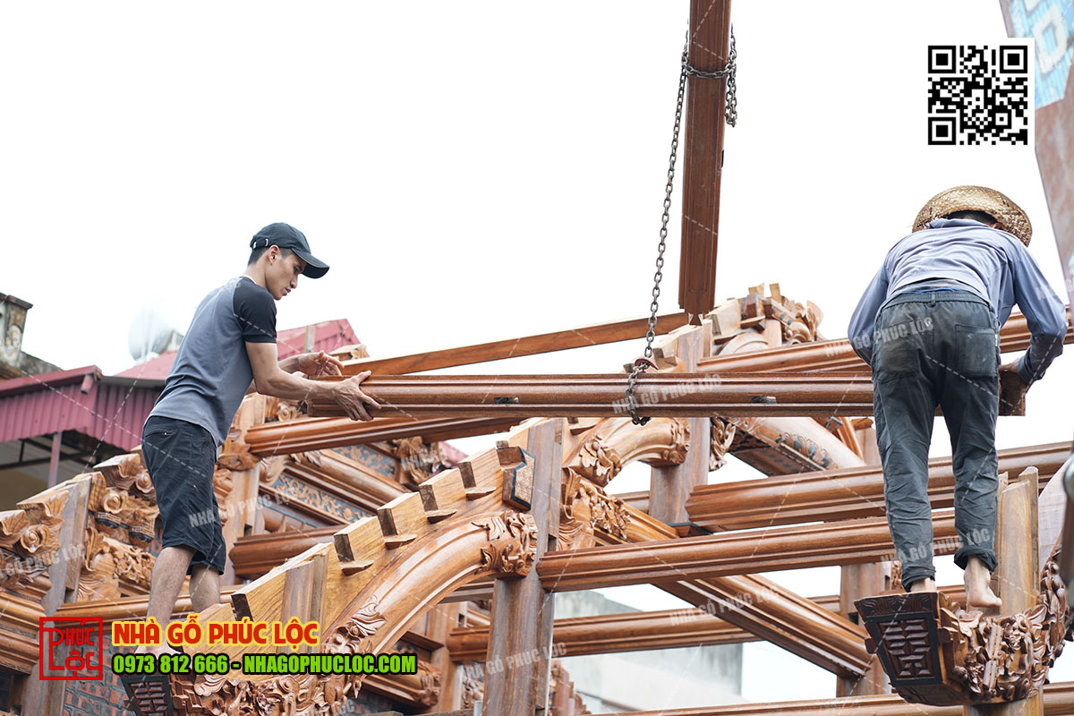 Khi dựng vì kèo, thợ mộc thường lắp khung chính trước rồi mới đặt xà, rui và mè để đảm bảo mái chịu lực đều. Các mối nối mộng chốt cần khít và chắc để khung nhà không bị xô lệch theo thời gian. Sau khi hoàn thiện, gia chủ nên kiểm tra định kỳ và sơn dầu bảo vệ gỗ khoảng vài năm một lần để chống ẩm và mối mọt. Cách làm này giúp khung vì kèo bền lâu, giữ được vẻ chắc chắn và dáng mái chuẩn truyền thống.