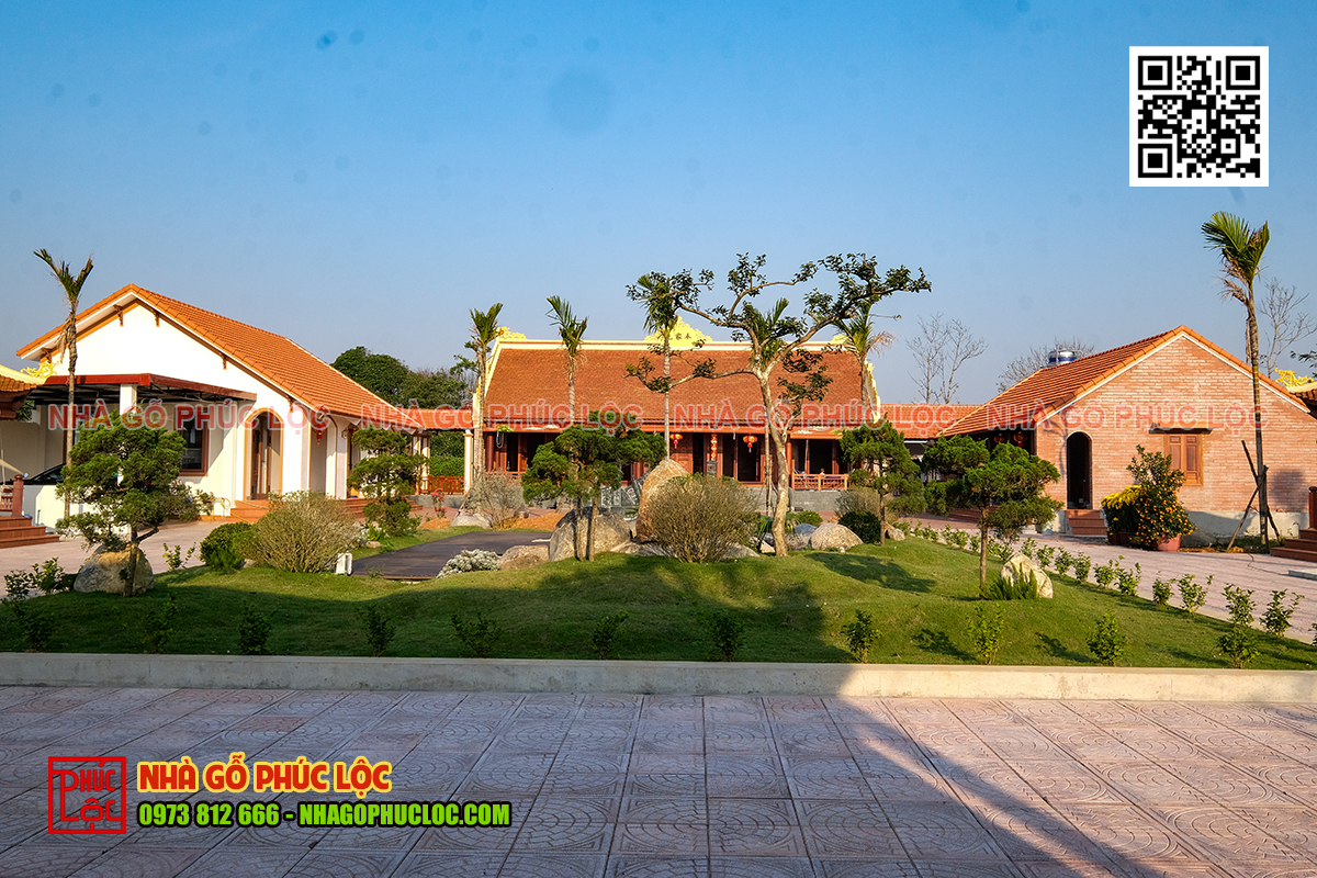 Nhà gỗ sân vườn đẹp mang lại cho gia chủ sự gần gũi với thiên nhiên, tạo không gian sống thư giãn với bầu không khí trong lành. Quần thể nhà gỗ sân vườn đáp ứng đầy đủ các công năng như: nghỉ ngơi, thư giãn, thờ cúng tổ tiên, tiếp khách, sum họp gia đình,… tạo nên không gian ấm cúng và tiện nghi.