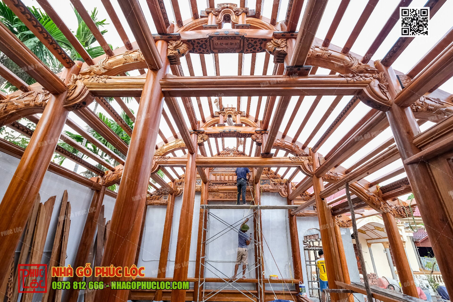 - Hệ thống xà: lắp dựng theo chiều ngang hoặc chiều dọc có nhiệm vụ liên kết các cột với nhau để tạo thành khung. Xà ngang thường có hình dạng chữ “T” hoặc chữ “L” khi nhìn từ phía trên. Hình dạng này giúp chúng chịu được áp lực cao. Mặc dù chức năng chính của xà ngang là chịu tải, nhưng đồng thời chúng cũng được trang trí với các họa tiết và chi tiết khắc gỗ, làm tăng tính thẩm mỹ của ngôi nhà.